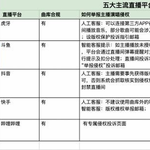 (图说:五大主流直播平台规范主播唱歌情况(2022)。)