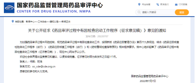 在本次公开征求意见的《药品审评过程中有因检查启动工作程序(征求意见稿)》(简称《意见》)中,明确提出: