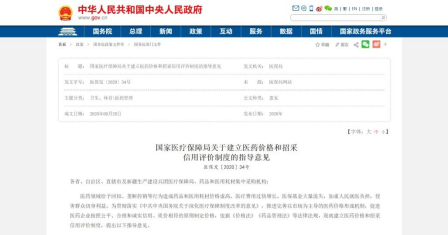 早在2020年国家医保局发布的《关于建立医药价格和招采信用评价制度的指导意见》中,已经要求省级集中采购机构日常运行中通过监测、受理举报等方式,掌握医药企业定价、投标、履约、营销等方面的失信行为信息并予以记录,对于回扣、垄断控销等行为将被列入“失信名单”。