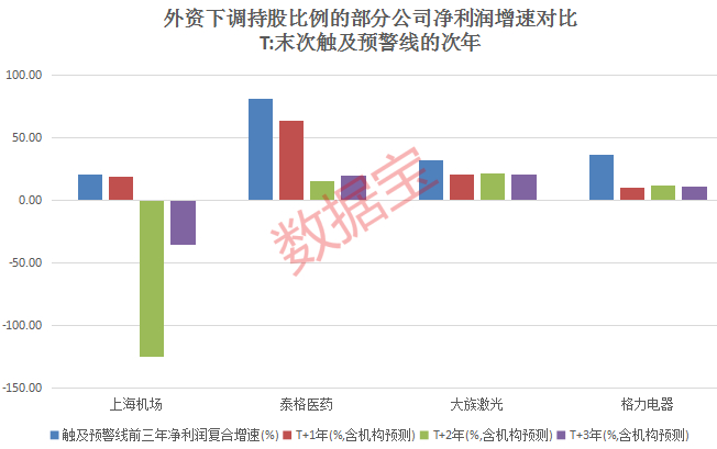 外资为何下调这8家公司的持股比例,对这些公司触及外资持股预警线前后的业绩分析发现,超过“24%”预警线以前,这8股业绩增长相对稳定,过去三年(以首次超过预警线的上一年为基准)净利润复合增速平均近24%;但末次触及预警线以后,公司业绩增速呈不同程度下滑,甚至负增长。比如上海机场2018年、2019年净利润增幅低于20%,2020年、2021年净利润负增长;泰格医药2020年12月4日后外资持股比例不再超过24%,2021年其净利润增速大幅下滑,机构预测其2022年净利润增幅或低于20%;大族激光、启明星辰业绩增速也有下滑趋势。