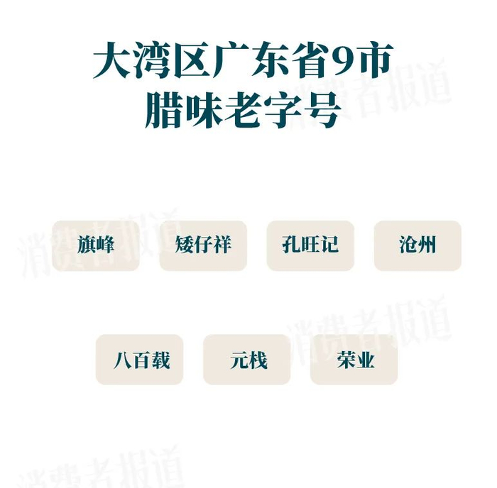 大湾区有众多知名的腊味老字号,比如与一段美好的爱情有关的矮仔肠,有着“广州乳猪第一家”美名的孔旺记,创制出独具特色的“香化鸭润肝肠”的八百载,还有沧州、元栈、荣业、旗峰等。如若去到香港、澳门,锦祥号腊味 、陶园腊肠、荣华腊肠、凤城腊味......也非常值得一试或者作为手信带回家。