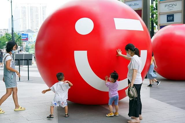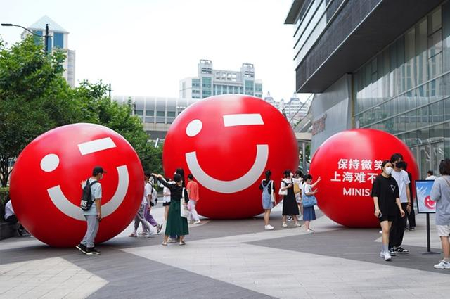 据悉,观众打卡“笑脸不倒翁”装置展,还可以领取上海限定笑脸解压球1颗。据相关负责人介绍,解压球是一种释放紧张情绪的球类玩具。这种玩具看似无聊,实则可以在玩耍的过程中进行自我发泄、自我解压。“当今社会不同的人群,都有不同程度的压力。借助偌大的笑脸装置来向大众传递欢乐积极、治愈焦虑的理念,激励大家一起笑对生活,朝自己和生活Wink一下,与‘焦虑’和解,驱散疫情的阴霾。”