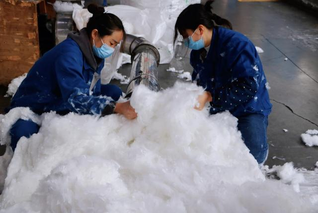 “做化纤就和做面条差不多,和面、揉面、压面,从喷头出来的纤维丝就是我们的‘面条’。”在上海德福伦新材料科技有限公司(以下称为德福伦),技术部门负责人魏丽菲用生动的比喻向记者介绍着产品制作流程。