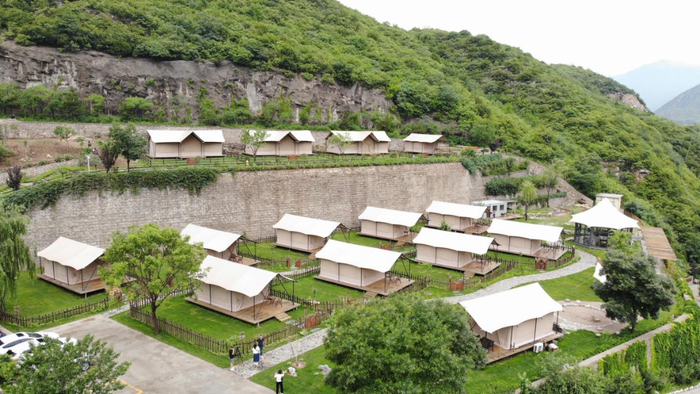 近两年受疫情影响,人们出游半径圈缩小,不少人把出游目的地转变成城市周边的乡村。针对这一特点,河北涞水凭借紧邻北京、天津、石家庄等大城市区位优势,利用这里的好山、好水、好风景,积极谋划野三坡露营地建设,开发旅游新业态。2021年以来,野三坡管委会已精心培育了百里峡景区外围露营地、拒马河畔露营地、白草畔大森林露营地、可野·鹿鸣精品帐篷度假营等5个户外露营地,其中可野·鹿鸣精品帐篷度假营填补了野三坡景区高端露营市场的空白。在建设过程中,野三坡管委会从规划设计、疫情防控、管理人员培训等方面给予了大力支持。