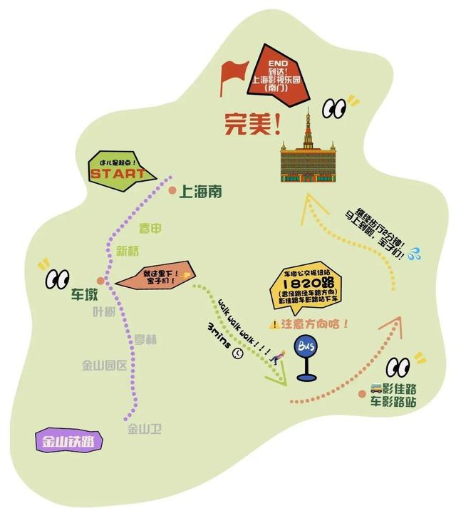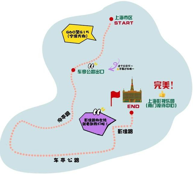 上海市区出发—G60至G15宁波方向—车亭公路出口下—右转进入泖亭路—车亭公路左转—影佳路右转向前300米即到上海影视乐园(影佳路366号)