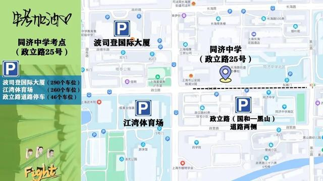 地址:政立路25号,附近有波司登国际大厦停车场(290个车位)、江湾体育场停车场(260个车位)、政立路道路停车(46个车位)。