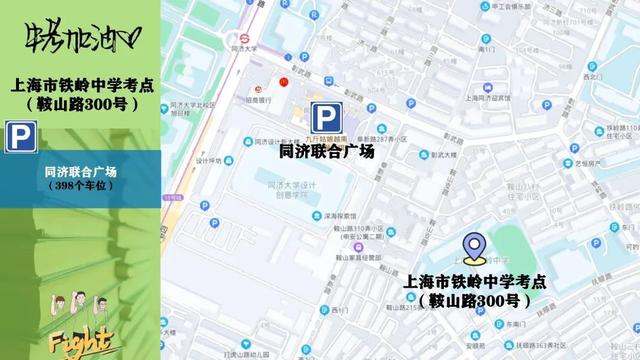 地址:鞍山路300号,附近有同济联合广场停车场(398个车位)。