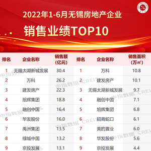 2022年1-6月,无锡商品住宅新增130.51万方,成交164.61万方,销售金额达395.71亿元,下面请看2022年1-6月无锡房企的具体表现如何。