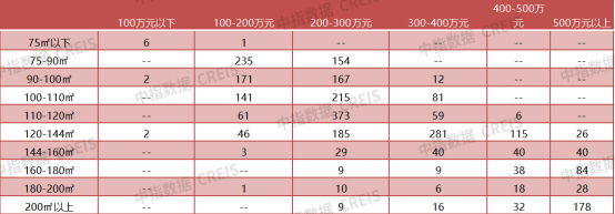 2022年6月,从面积段和价格段来看,110-120㎡面积段、200-300万元价格段销售最为热门,成交373套,占比12.73%。