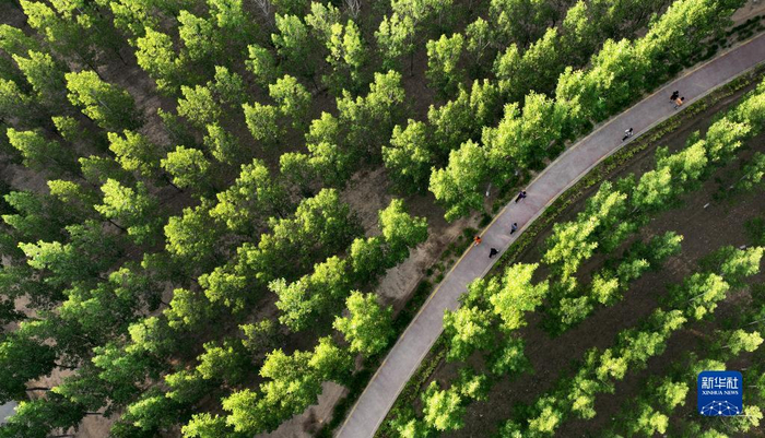 近年来,黄河西岸的陕西省渭南市合阳县牢固树立“绿水青山就是金山银山”生态理念,依托政府主导、市场运作、全民参与的创建模式,造好林、美化路、建好园、用活水,实施城市增绿、道路扩绿、水系添绿、湿地复绿、荒山披绿、镇村兴绿等森林覆盖工程,形成了“城镇园林化、乡村林果化、道路林荫化、农田林网化”的城乡绿化格局。