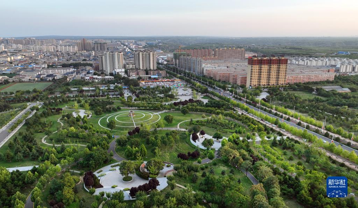 合阳县城的绿地广场(7月8日摄,无人机照片)。