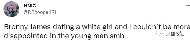 当时就有很多网友这么说,“布朗尼詹姆斯约会了一个白人女孩,我对他实在是太失望了。”