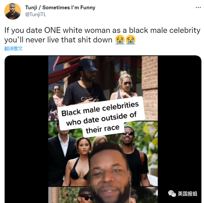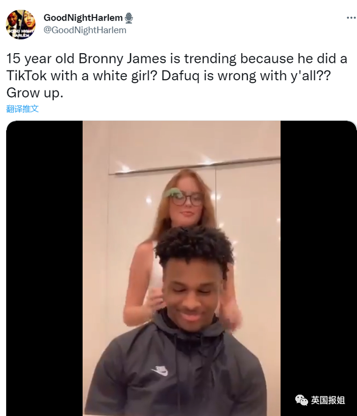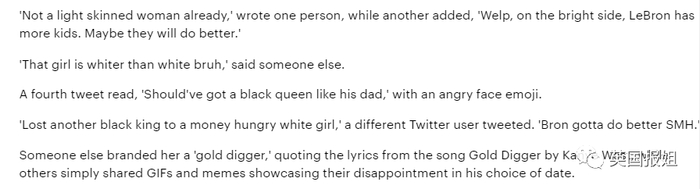和白人女性约会的黑人男明星,同样会被审查,就像勒布朗的儿子那样,甚至有网友说,
