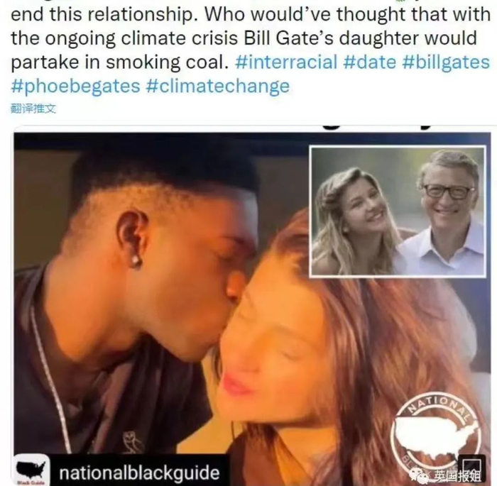 “比尔盖茨的女儿正在约会一个黑人男性。