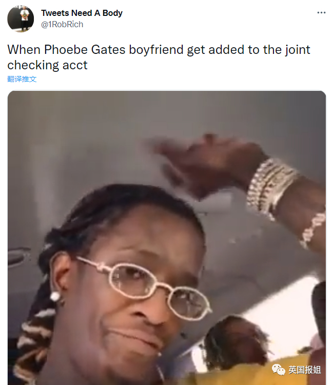 “当菲比盖茨的男朋友被加到联名支票账户里的时候:”