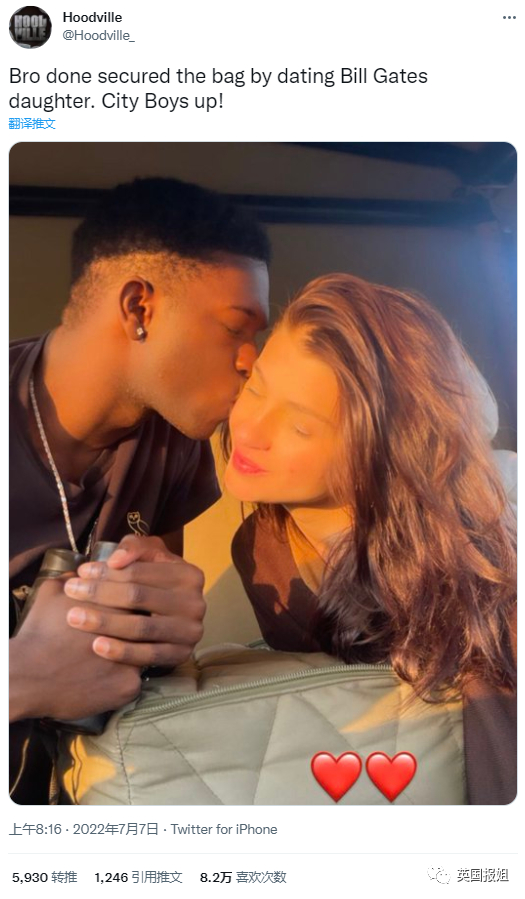 “比尔盖茨那个继承了他亿万财产的小女儿,正在约会一个黑人小伙!”