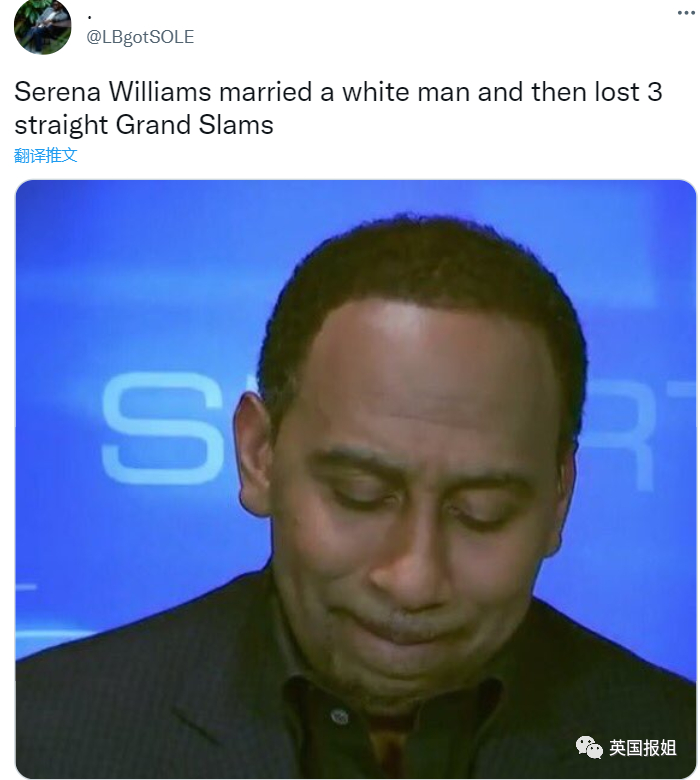 “塞雷娜·威廉姆斯和一个白男在一起了,从此就回不到以前的辉煌。”