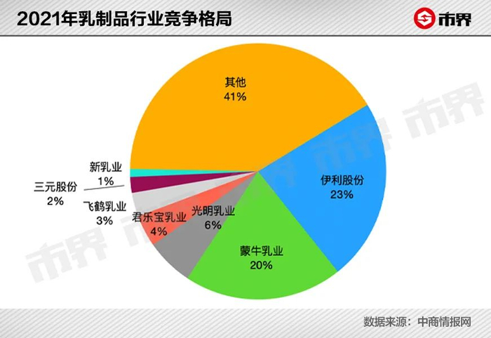 国家统计局数据显示,从乳制品整体市场来看,2021年,伊利、蒙牛合计占据了43%的市场份额,而新疆乳企均在“其他”之中。
