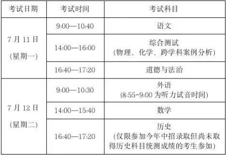 中考时间安排