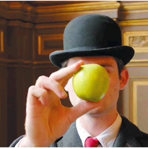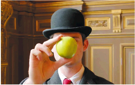 他先是“邂逅”了两位超现实主义艺术大师——勒内·马格利特和萨尔瓦多·达利。周杰伦变出了一个绿苹果,这是勒内日后名作《人类之子》中的关键元素。接着周杰伦又给达利变了把勺子变弯的魔术,“启发”达利创作出享誉世界的名作《记忆的永恒》。而MV中的钟表指向正好与《记忆的永恒》相反,这对应了周杰伦的歌曲《反方向的钟》,是一个隐藏彩蛋。他还给莫奈变出了睡莲,这些都应了歌词中的“借你灵感不用还我”。
