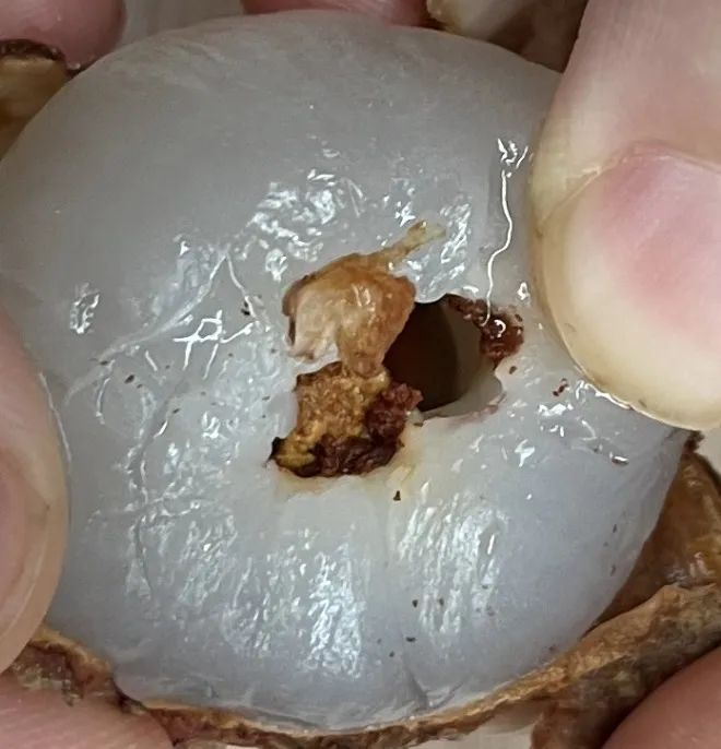 与杨梅中的果蝇幼虫往往深藏在果肉里不同,荔枝蒂蛀虫通常藏在荔枝的果核里,就算有,大概率是也吃不到的,不用太担心。