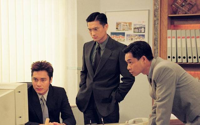 经典港剧《创世纪》中,郭晋安(右)与罗嘉良(左)、陈锦鸿(中)搭档出演好兄弟。