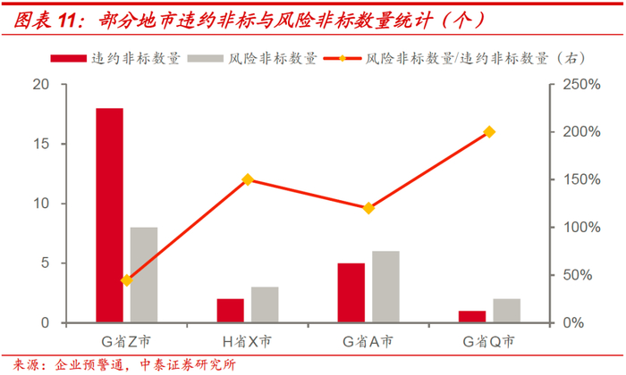 最后,本文针对城投非标违约事件是否会进一步传导到直融市场提供了三个可供审慎观测或交叉验证的角度。一是关注区域城投非标风险事件,警惕负面因素进一步发酵;二是关注区域内机关事业单位和产业类国企的非标违约事件;三是关注区域城投及其关联主体商票逾期事件。