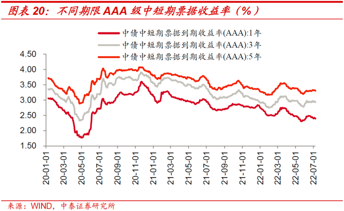 本周1年期、3年期和5年期中短票据收益率均下行。具体来看,本周AAA评级1年期、3年期和5年期中短票据分别收于2.39%、2.93%和3.30%,1年期中短期票据收益率较上周下行1.06bp,3年期与5年期分别下行0.93bp和0.94bp。