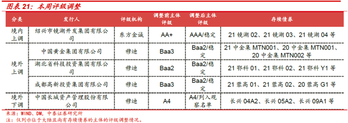 本周共1家信用债发行人主体评级下调,4家信用债发行人主体评级上调。