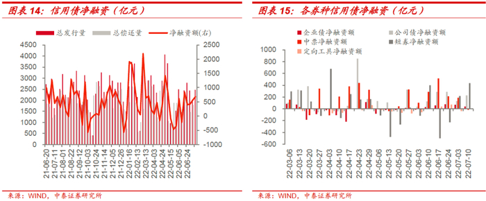 本周信用债发行规模与净融资额有所上升。本周信用债发行总额2472.93亿元,较上周上升21.69%,偿还总额1787.88亿元,较上周上升21.95%。净融资额为685.05亿元,较上周增长21.04%。