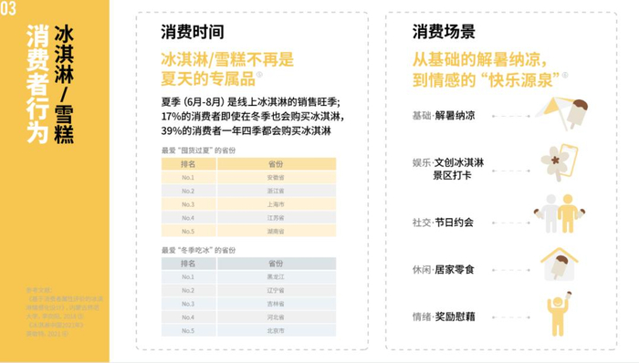 冰淇淋/雪糕消费者行为。/图源:《中国雪糕冰淇淋行业趋势报告》