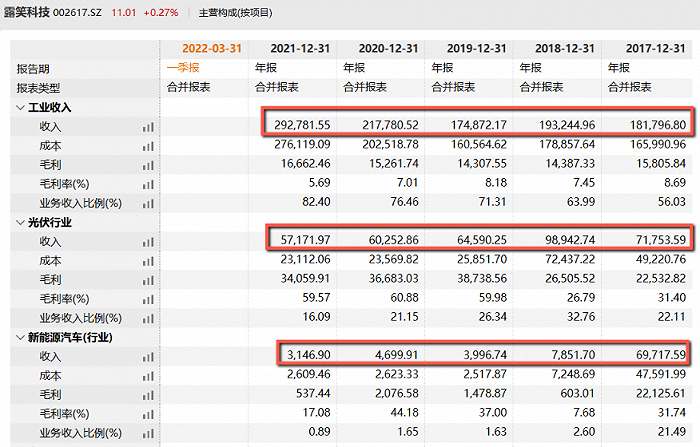 纵使之前露笑科技一路追热点的资本运作天花乱坠,但最终业绩还得依靠传统漆包线业务。从公司近五年业绩表现可以看到,2016年和2017年所新涉及的锂电业务与光伏业务纷纷高开低走。截至去年底年报数据,锂电池收入已可忽略不计,上海正昀新能源技术有限公司的未完成业绩承诺的2亿元补偿款,也不了了之;光伏业务收入金额也创下新低,原因同样也是江苏鼎阳绿能电力有限公司等企业未完成业绩承诺。不难发现,当时并购的这些企业如今都成为了露笑科技的“不良资产”。