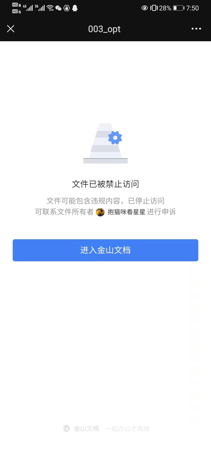 不过,贝壳财经记者发现,无论是否涉嫌违规,这些文件均只是被禁止分享,本地文件并未被删除。而已经分享出去的链接在文件被禁止分享后,用户再点击链接会显示“文件可能包含违规内容,已停止访问,可联系文件所有者进行申诉”字样。