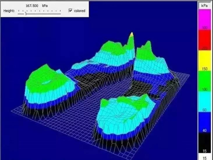 足部研究专家做了一项测试,通过足底量测系统来探知在运动中足部所承受的压力情形。