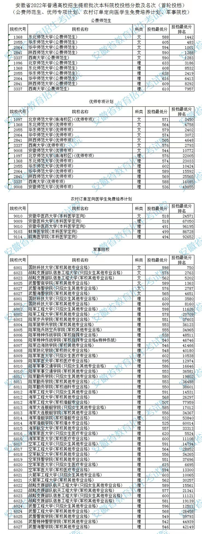 安徽省2022年普通高校招生提前批次本科院校投档分数及名次(首轮) 安徽发布 2022.07.1110:50 关注 据安徽省教育招生考试院消息安徽省2022年普通高校招生提前批次本科院校投档分数及名次(首轮)刚刚发布↓↓↓