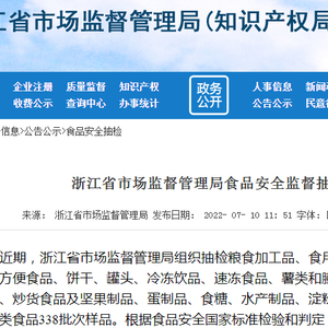 浙江省市场监管局抽检食品338批次 不合格9批次