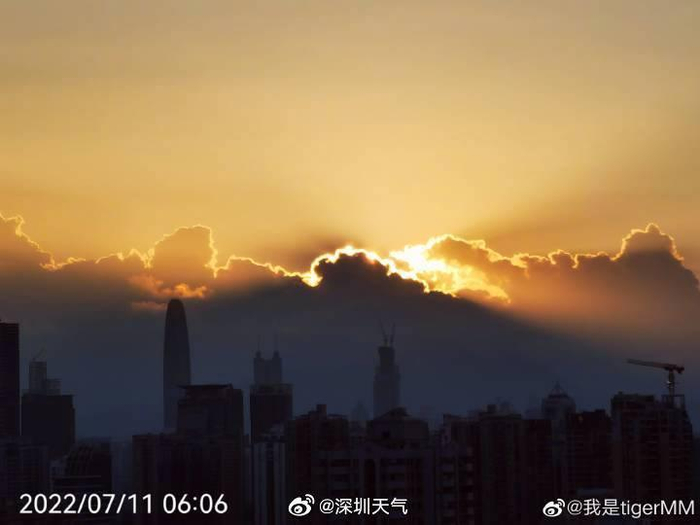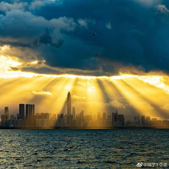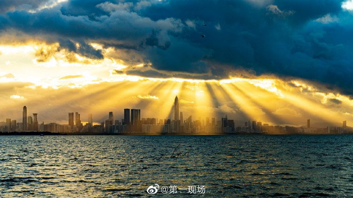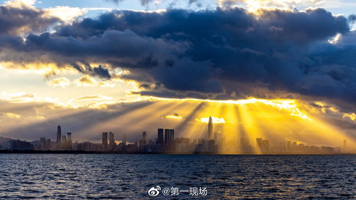 满城尽带黄金光!深圳天空出现丁达尔现象