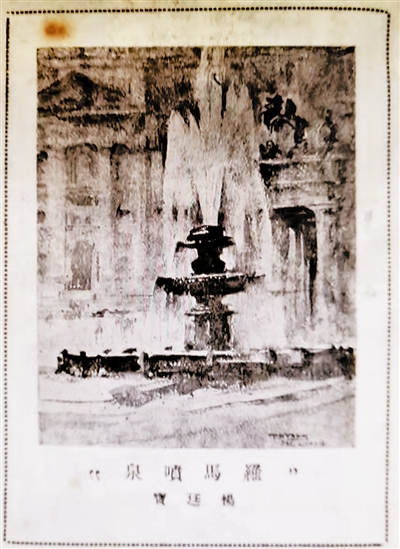 图⑤1927年《晨报星期画报》载杨廷宝作品《罗马喷泉》
