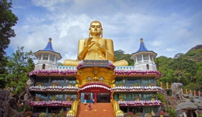 是斯里兰卡佛教寺窟,位于斯里兰卡岛的中部,距离科伦坡城东北149公里。丹布勒金寺建于公元前1世纪,是斯里兰卡的朝圣之地,是一座比较典型的石窟式寺庙。这里珍藏着面积达2100平方米的壁画和157尊雕像,极为珍贵,佛窟包括五所圣堂,是斯里兰卡最大的、保存最完整的洞穴庙宇,极具宗教艺术价值,展示了佛教艺术的魅力。