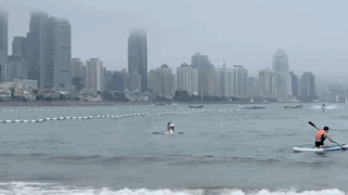 她没法忘记自己哆哆嗦嗦地站在桨板上的那一刻,教练在一旁鼓励她,只要站起来,就奖励她免费冲水。