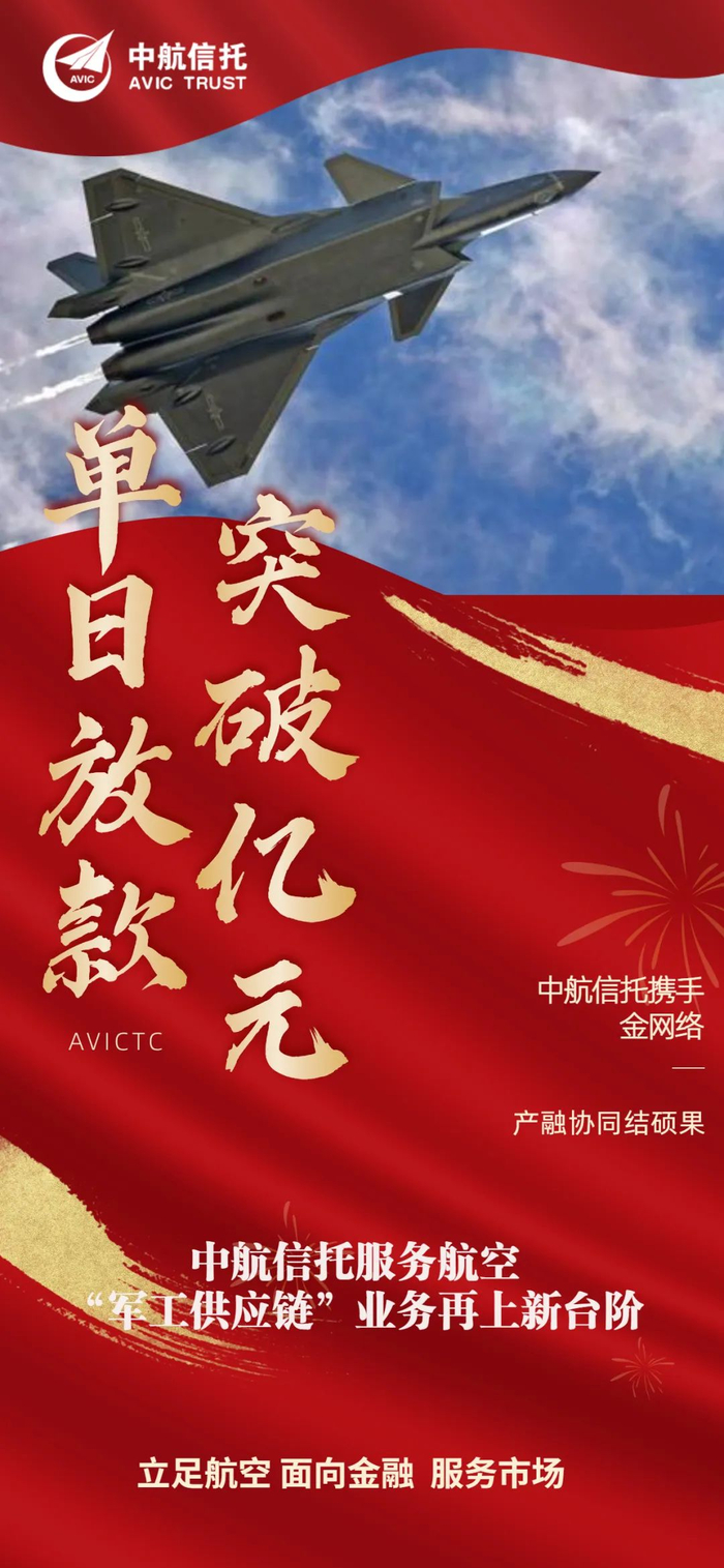 【机构风采】助力数智航空 中航信托军工供应链产品单日放款破亿元