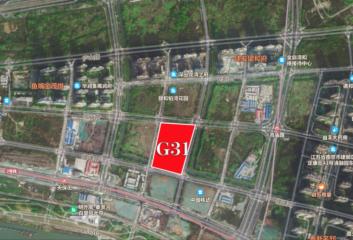 燕子矶G32地块(栖霞区燕子矶街道燕园路以东、寅春西路以北地块),规划用地性质:R2二类居住用地,出让面积:61125.48㎡,容积率1.0<Far≤2.6,起拍总价:30亿元,毛坯限价:32640元/㎡。最终,经过34轮竞拍,该地块被保利以总价33.3亿元拿下,成交楼面价20953元/㎡。