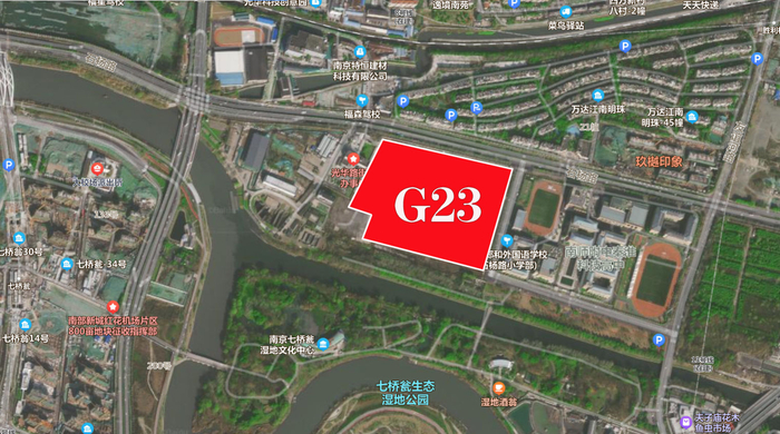 该地块为秦淮河畔低密稀缺宅地,紧邻运粮河、七桥瓮湿地公园,自然景观资源优越。地块西南角规划有幼儿园,东侧为已建成的南京郑和外国语学校(石杨路小学部)、南师附中秦淮科技高中,教育资源完善。