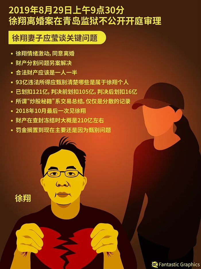 其余几条都可以忽略不计,重点在于第3条:依法分割夫妻共同财产。根据徐翔案的法院判决,2017年1月22日,徐翔因犯操纵证券市场罪被判处有期徒刑5年6个月,没收违法所得逾90亿,罚金110亿元。