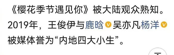 也就是说,在编造完履历,创建好词条后,王俊伊开始粉墨登场。各种新戏的消息、代言的消息、参加综艺节目的消息、接受专访的消息、为品牌站台的消息、开演唱会的消息、粉丝接机的消息层出不穷,甚至称他和杨洋、鹿晗等人并称“内地四大小生”。