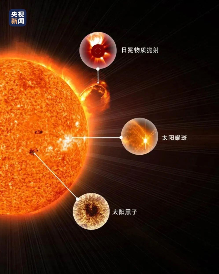 无论是黑子、太阳耀斑抑或日冕物质抛射,它们的根源都是太阳磁场。变化的太阳磁场不仅可以在光球层产生黑子,还能触发耀斑和日冕物质抛射。太阳磁场、耀斑和日冕物质抛射三者简称为“一磁两暴”,这也是ASO-S卫星的主要科学目标。