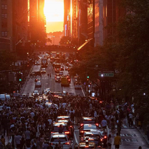 当地时间7月11日,美国纽约出现“曼哈顿悬日”美景。“曼哈顿悬日”是纽约市标志性的景观,每年5月和7月出现两次,指日落时太阳正好出现在曼哈顿东西向街道正上方、似乎悬在两侧高楼大厦之间的画面。