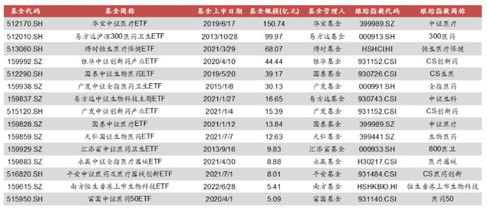 规模超5亿的医药生物主题ETF一览