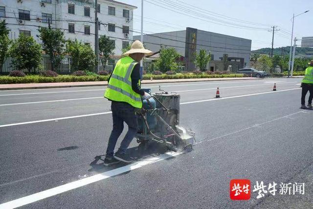 与此同时,各条普通国省道上路面清扫、绿化修剪、边沟清理、标线、安防设施维护等各项工作均有条不紊地开展。划标线是挑战高温的活儿。在104国道溧阳段,标线工作人员冒着酷暑、头顶烈日,推动机械操作着热熔材料。热熔釜里的燃烧涂料流出时温度超过200度,涂料顺着铁槽注入画线车。这辆颜色斑驳的小推车上装着画线机、煤气罐、涂料桶,满载时足足有200斤。推车就像一个大火炉,车边温度至少60度。通讯员 常路轩 扬子晚报/紫牛新闻记者 马奔