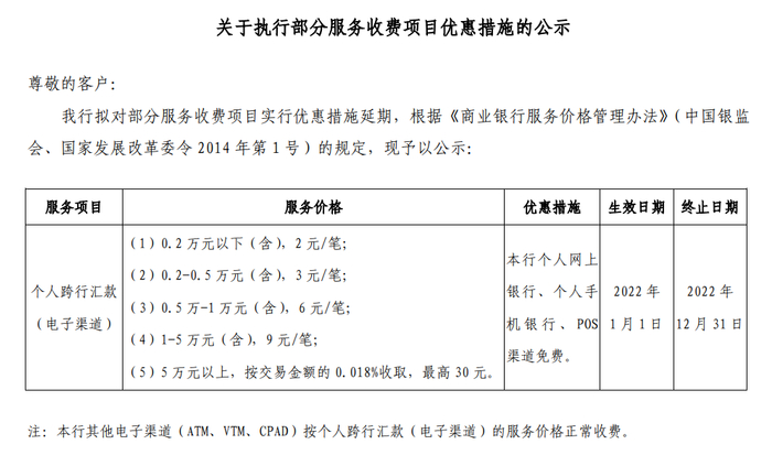 第一财经记者从浦发银行处了解到,此次调整对该行跨行转账的优惠收费并无影响,仅增添了跨行转账的新渠道。用户仍可通过该行个人手机银行、网上银行办理个人跨行转账汇款业务,且免收服务费。